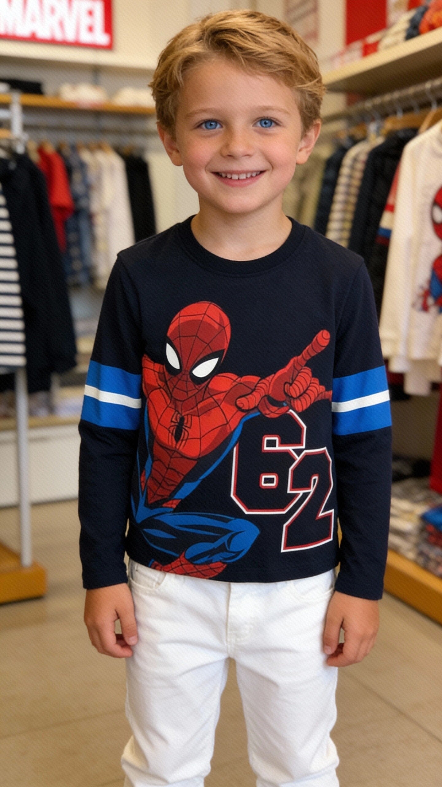 Laat je kleine superheld in stijl stralen met dit stoere Spider-Man longsleeve shirt, exclusief verkrijgbaar bij Lubbies Kleding!